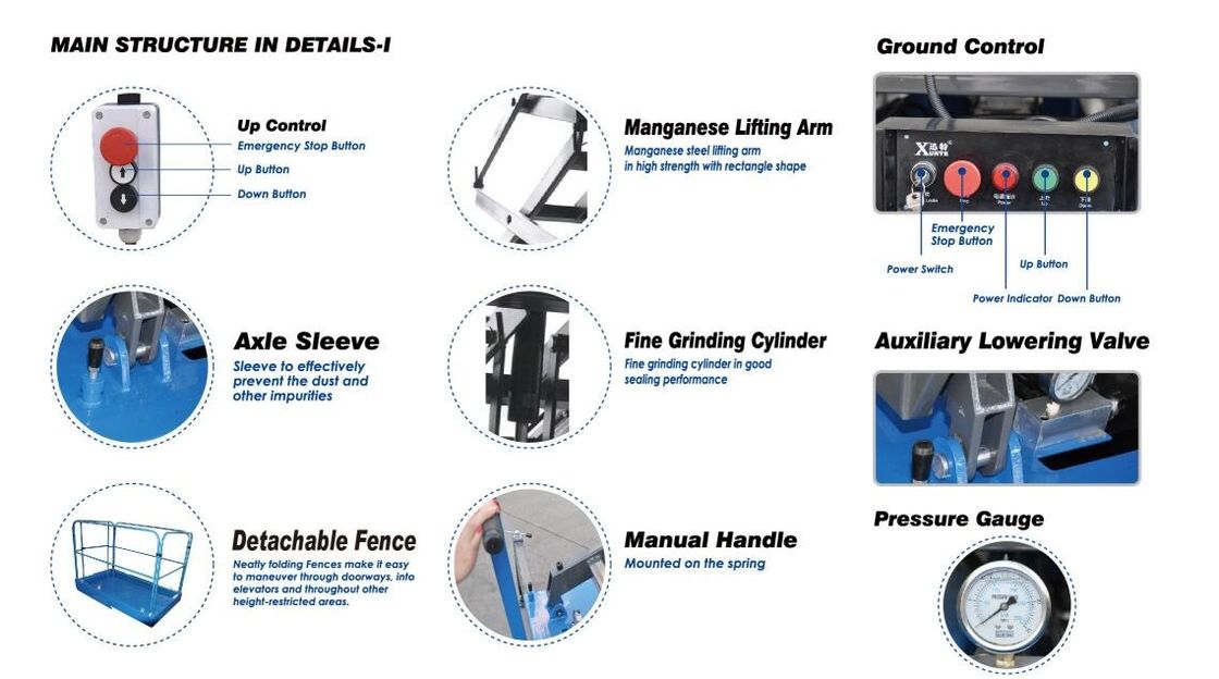 De schaarconstructie zorgt voor een betrouwbare stabiliteit wanneer de liften omhoog stijgen, het brede platform en de hoge laadcapaciteit zorgen voor een efficiëntere en veiligere werking van de antenne.