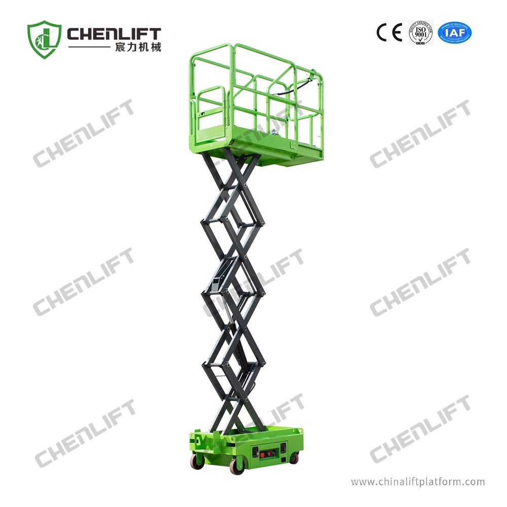 Mini Schaarhoogwerker heeft een compact ontwerp (zonder stempels, dus de voorbereidingstijd is korter en de werkefficiëntie wordt verhoogd) en is licht van gewicht (kan gemakkelijk met de hand worden geduwd)